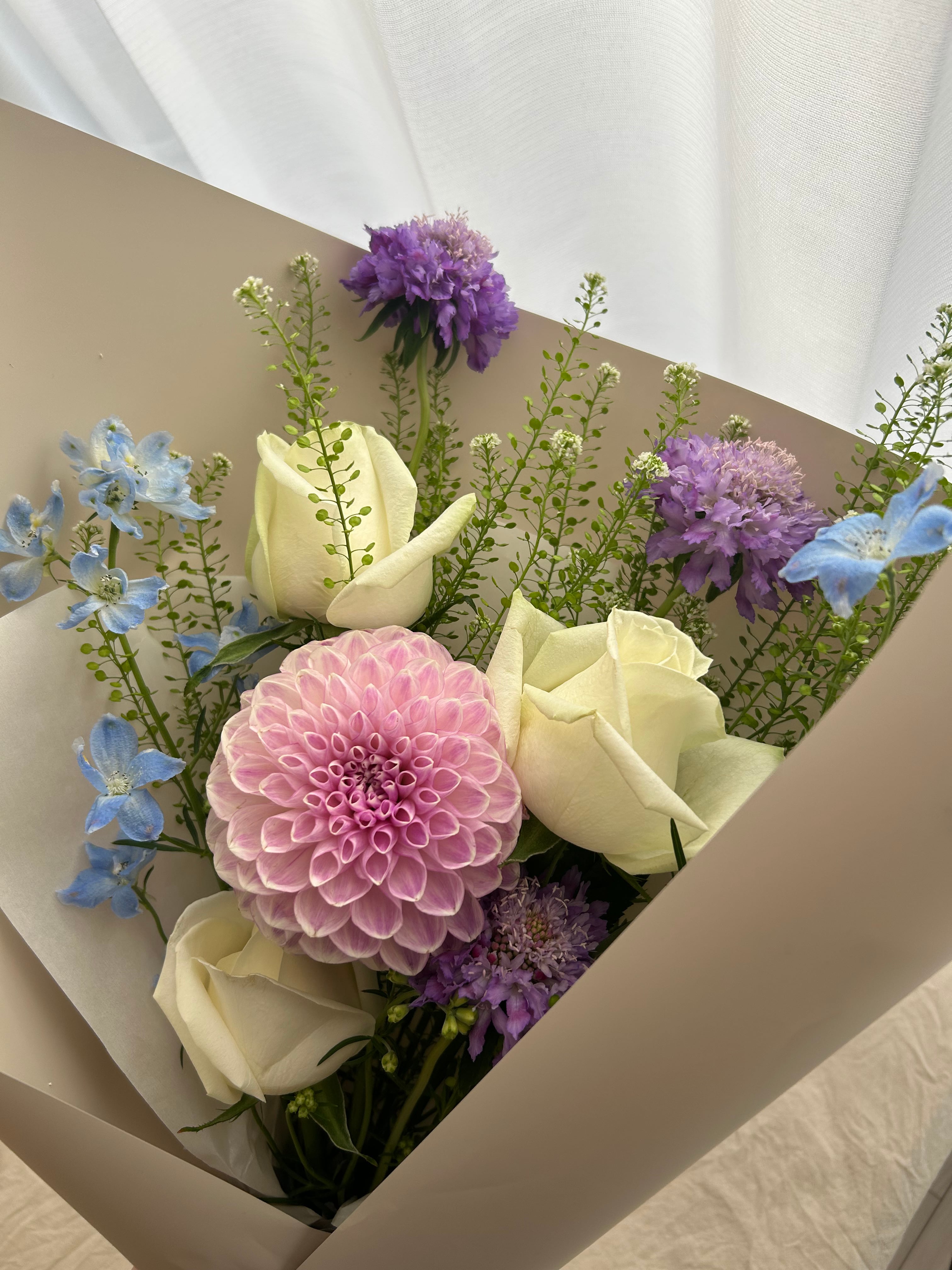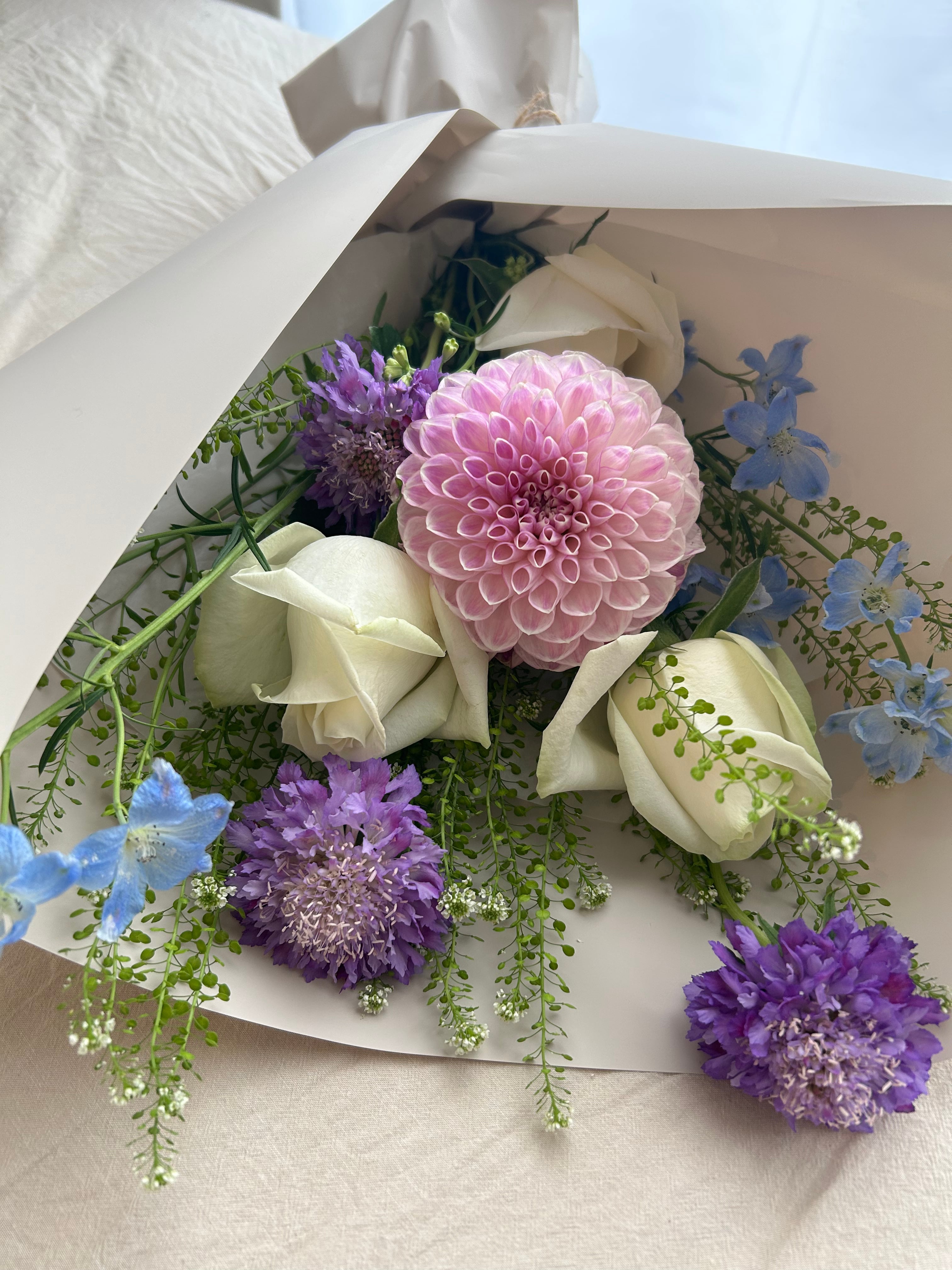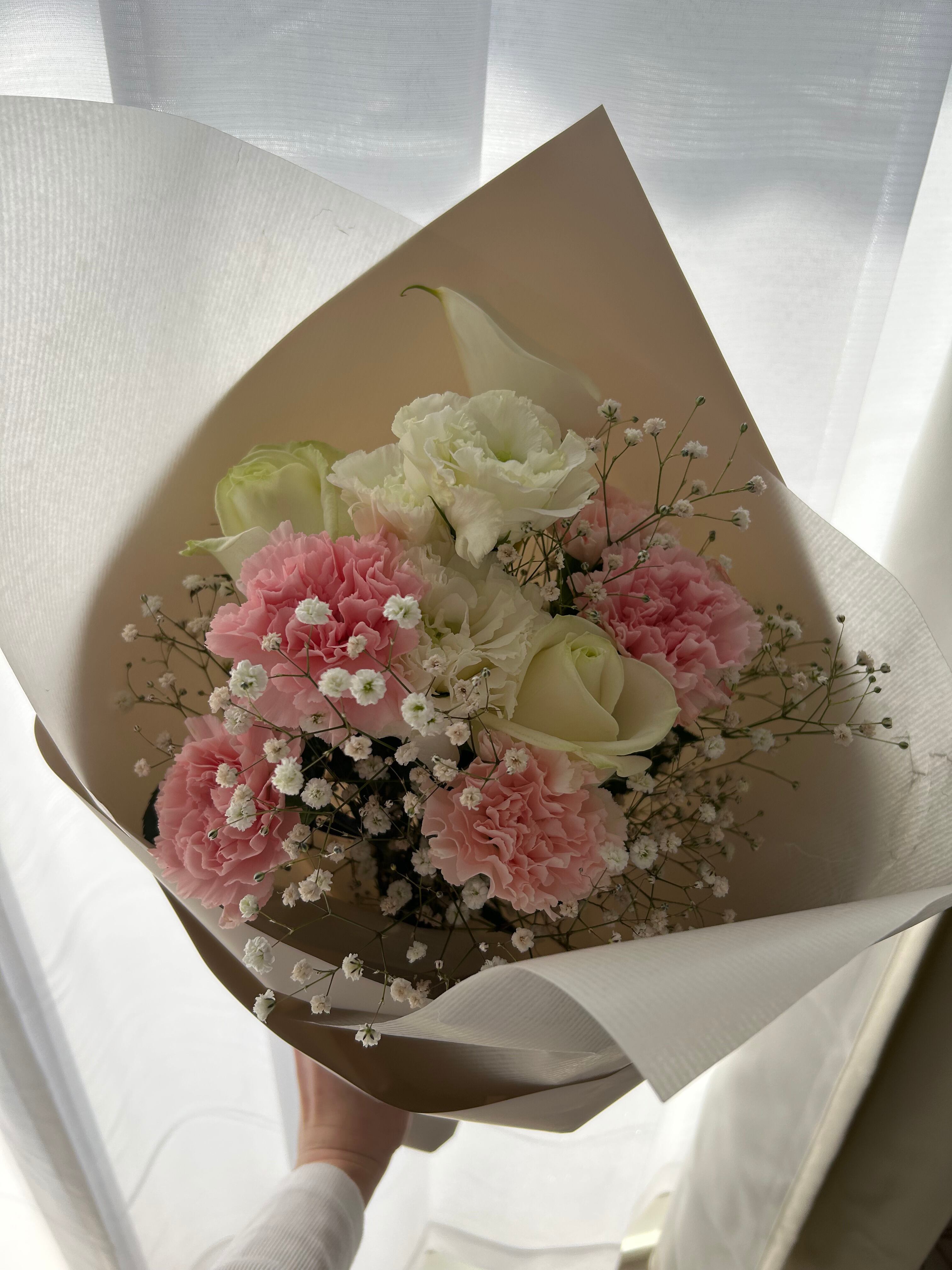 手にすっとなじむ、コンパクトな花束。