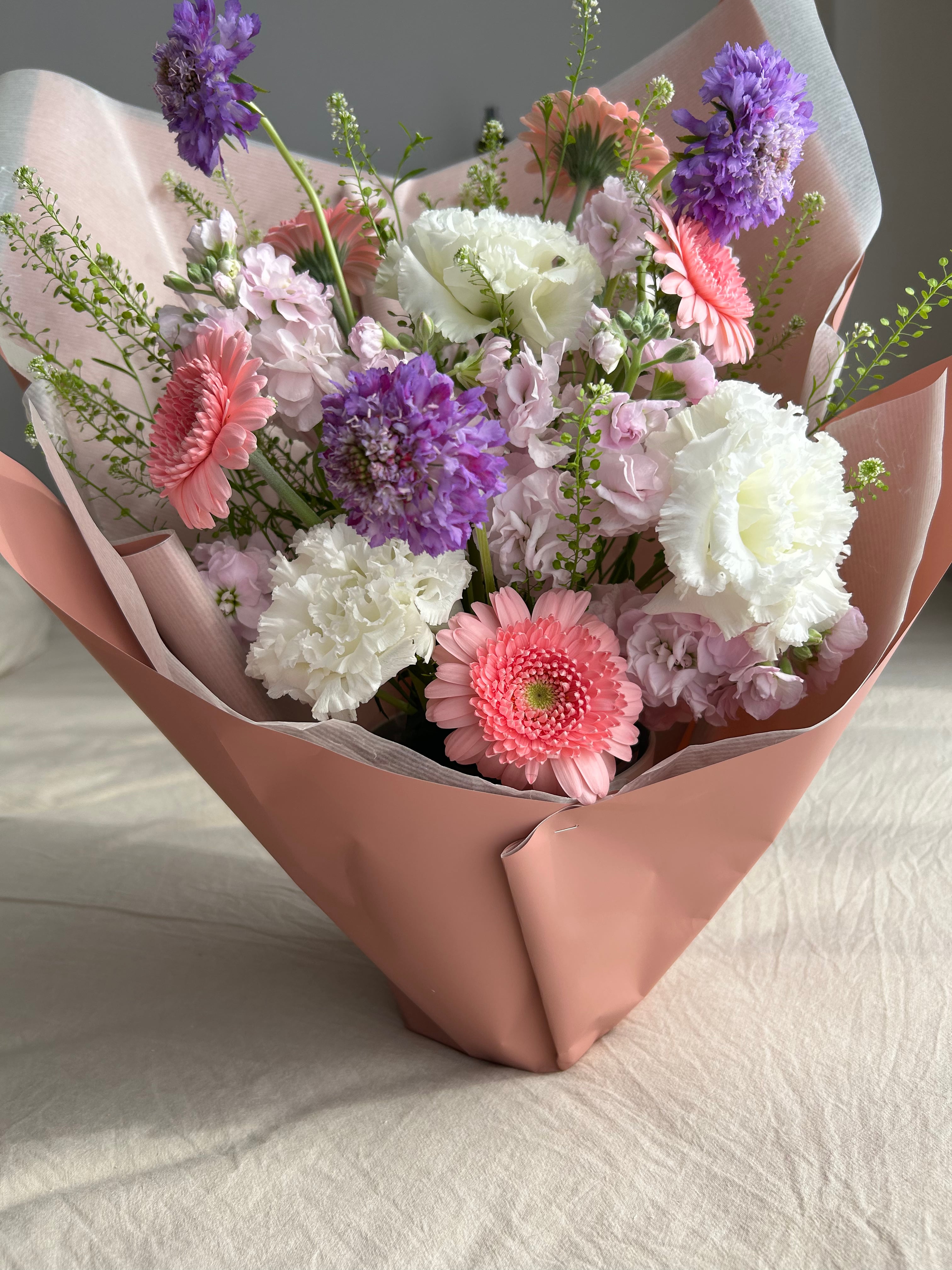 季節の花をひとつひとつ選び、心を込めて束ねています。