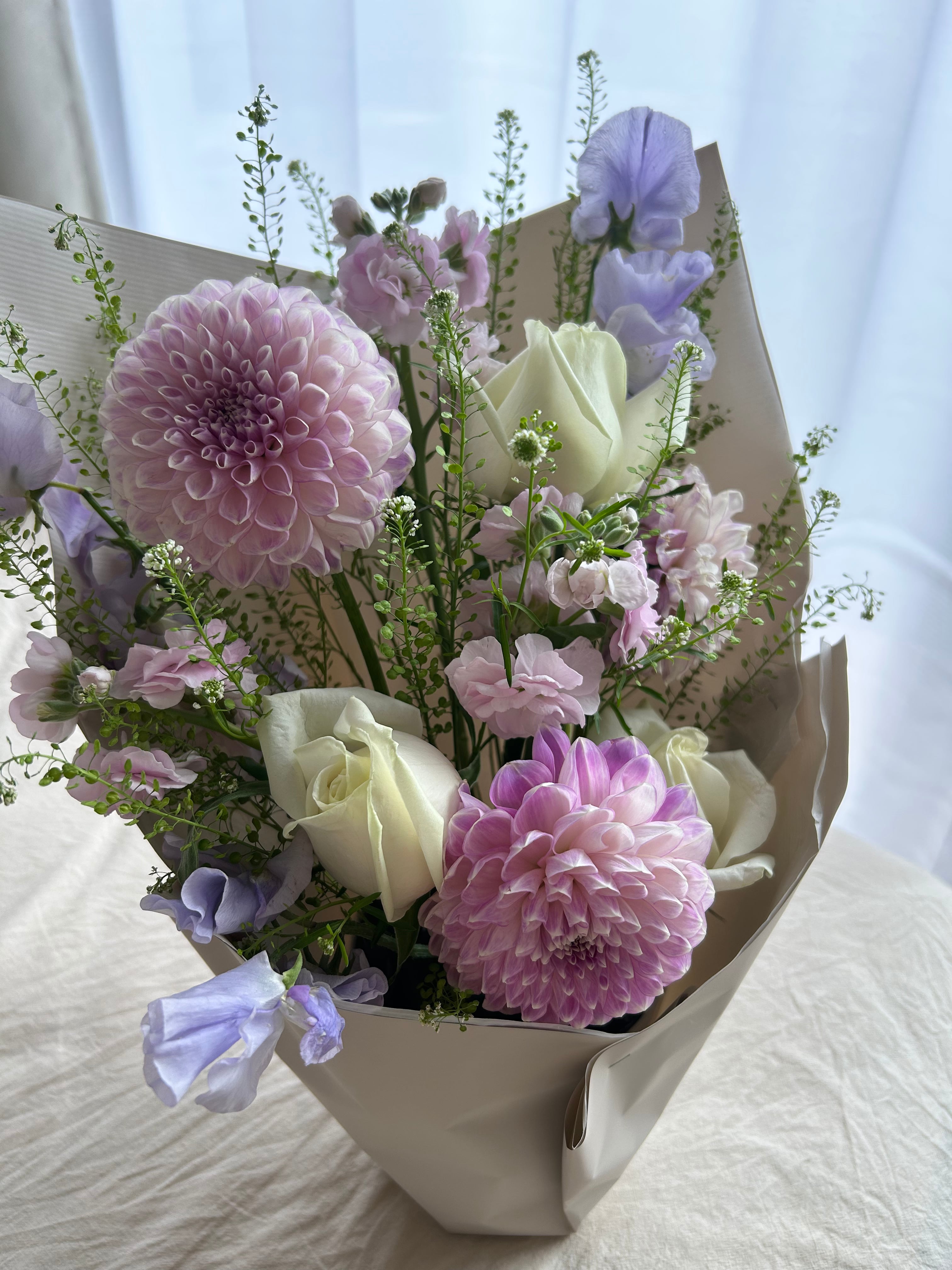 季節の花をひとつひとつ選び、心を込めて束ねています。